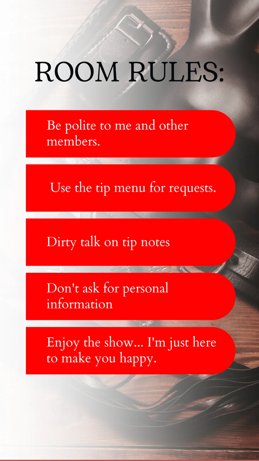 도기 스타일, 아헤가오, 에로틱 댄스, 카멜토우, 자지 평점, 핑거링, 스트립쇼, 페이셜, 풋 페티시, 플래싱, 블로우잡, 상의탈의, 트월킹, 치마속, orgasmo +10min, eyaculacion +10 min, squirt +25min, 크림파이, 음란한 대화, 딜도 또는 바이브레이터, 딥스로트, 섹스 기구, 니플 기구, 젖치기, 자위, squirting +15min, 굴욕, 재갈, 하드코어, 오일 쇼, 애널, 자위행위 지침